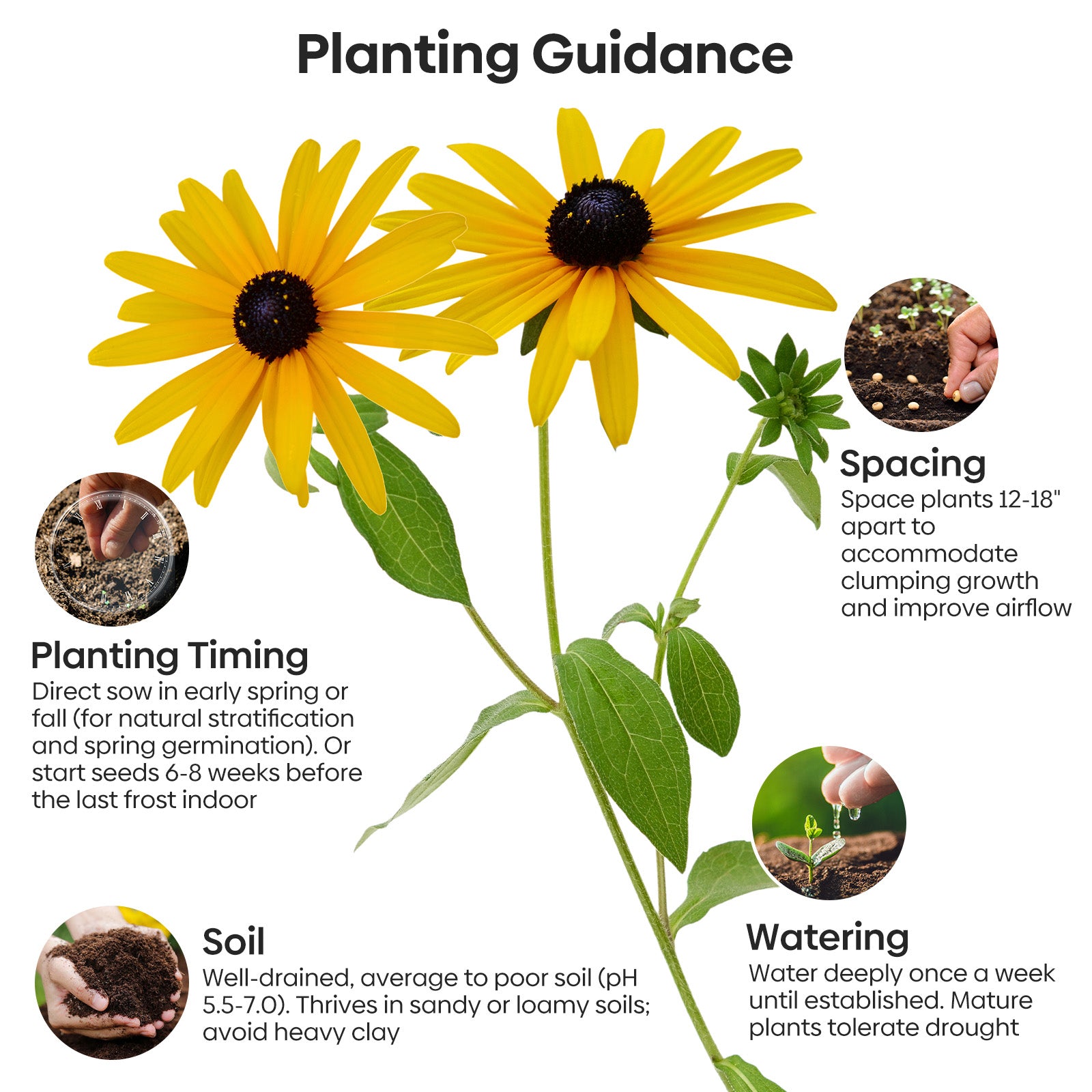 - Perennial/Biennial: Rudbeckia does not require special care during its cultivation process. It can be sown in spring and autumn and is very easy to cultivate. However, it is best grown in well-drained, loose, breathable, fertile sandy loam. As a perennial plant, the seeds that fall after maturity will naturally grow and bloom in the next year, achieving sustainable cultivation